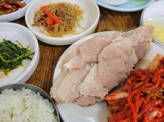 辛いのが苦手な方におすすめな韓国料理「ポッサム」。ゆで豚で薬味などと一緒に食べるお料理です。今まで食べていたポッサムは別の料理なのかと思うほど別格に美味しすぎるお店です。しっとりとジューシーなやわらかいお肉で豚肉の甘みも感じられます。スープやケランチムを含めたおかずが6種類にライスもつきます。サンチュに巻いて食べたりアミ塩(エビの塩辛)をつけたりお箸がとまりませんよ^^ランチ時は地元の人で行列ができているので少し時間をずらしていってみてね! お店:천하보쌈(チョンハポッサム)安国駅から徒歩5分