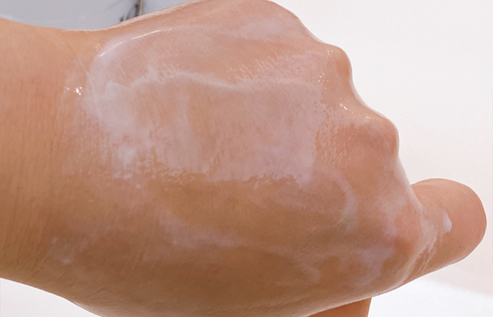 全体が白濁し、スルッとした手触りになったら乳化がされたサインです。乳化がされたらぬるま湯でよく流しましょう。