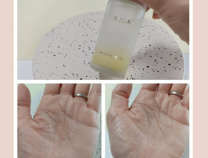 化粧水の後に使用すると化粧水で湿った肌にオイルがなじみ、水分と油分のバランスがとれた肌に。