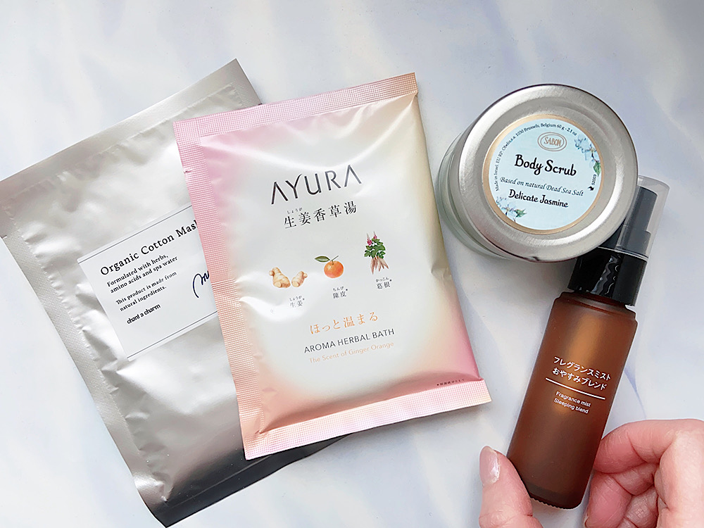 ボディスクラブは余分な角質や汚れを取り除き、肌の正常なターンオーバーを促す効果が期待できます。良質な塩とオイルが含まれたものを選ぶのがおすすめです。ミニサイズを常に数種類ストックしていて、気分に合わせて香りを選のもいいですね。なめらかな肌とバスルームに漂うは華やかな香りに、心まで満たされていきますよ。