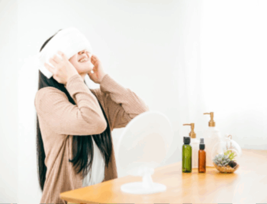 取り入れやすい、顔まわりのリンパケア。こめかみ→耳下→鎖骨へと優しく流すだけで、老廃物がスムーズに排出されやすくなります。さらに、温冷タオルでの温冷療法を組み合わせれば、むくみがキュッと引き締まり即効性も抜群です。