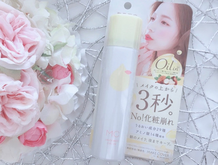 メイクの上からシューッと一吹きするオイルインスプレーです。オイルなのに重くなく、乾燥や皮脂によるメイク崩れを潤いながら防ぎます。細かいミストが勢いよく出て、気持ちが良く、イノセントリリーの香りがふわりと優雅に香ります。