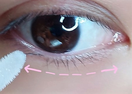 下まつげや目頭、目尻のまつげの際は、チップを縦にしたりと、角度を変えながら塗るとムラなく美容液を塗ることができます。