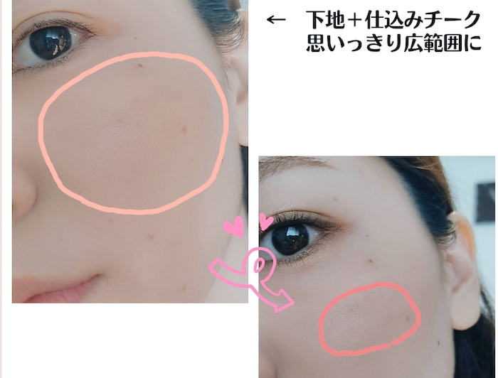 仕込みチークは、最後に重ねる仕上げチークのベースとして入れるもの。