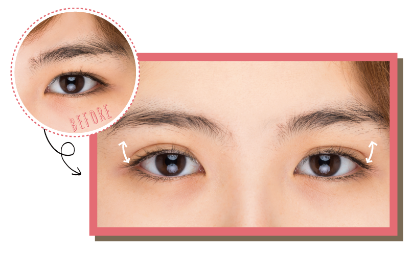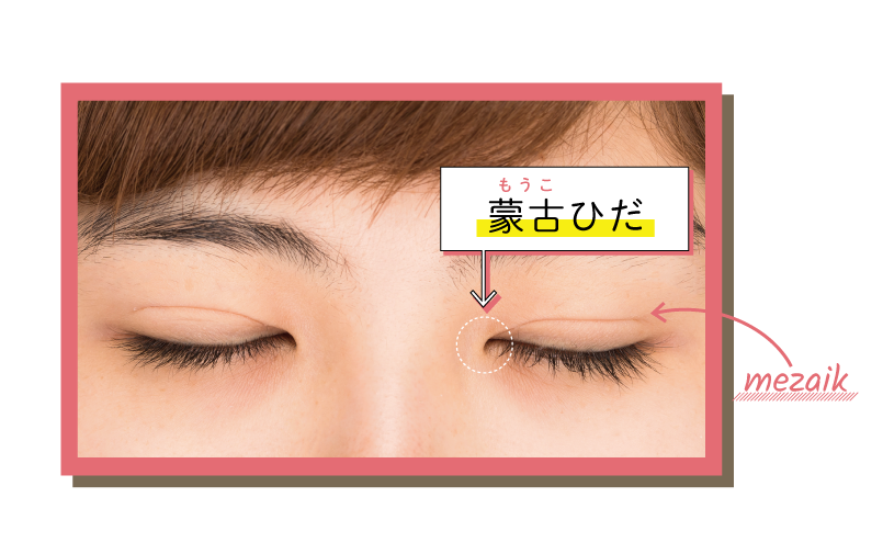 きれいに貼るポイントは、目頭にある蒙古ひだ(もうこひだ)の延長線上から貼っていくこと。