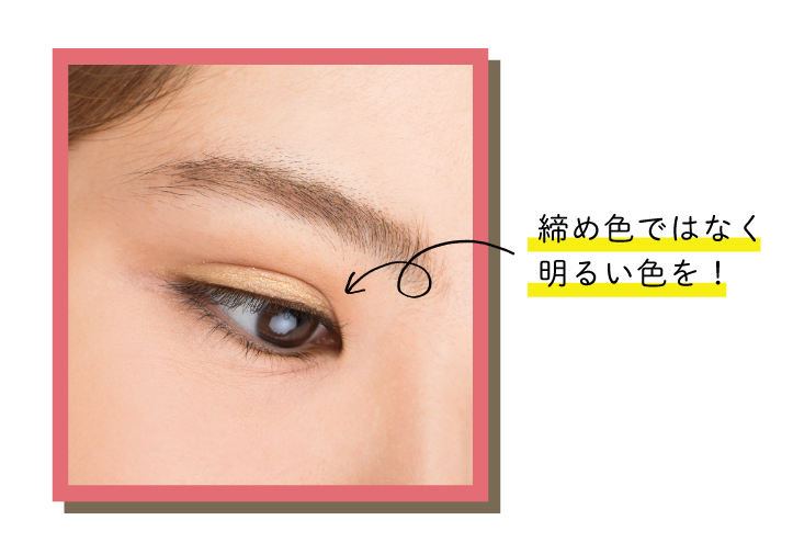アイシャドウも明るめの色を入れることで、ふたえ幅が強調されます。