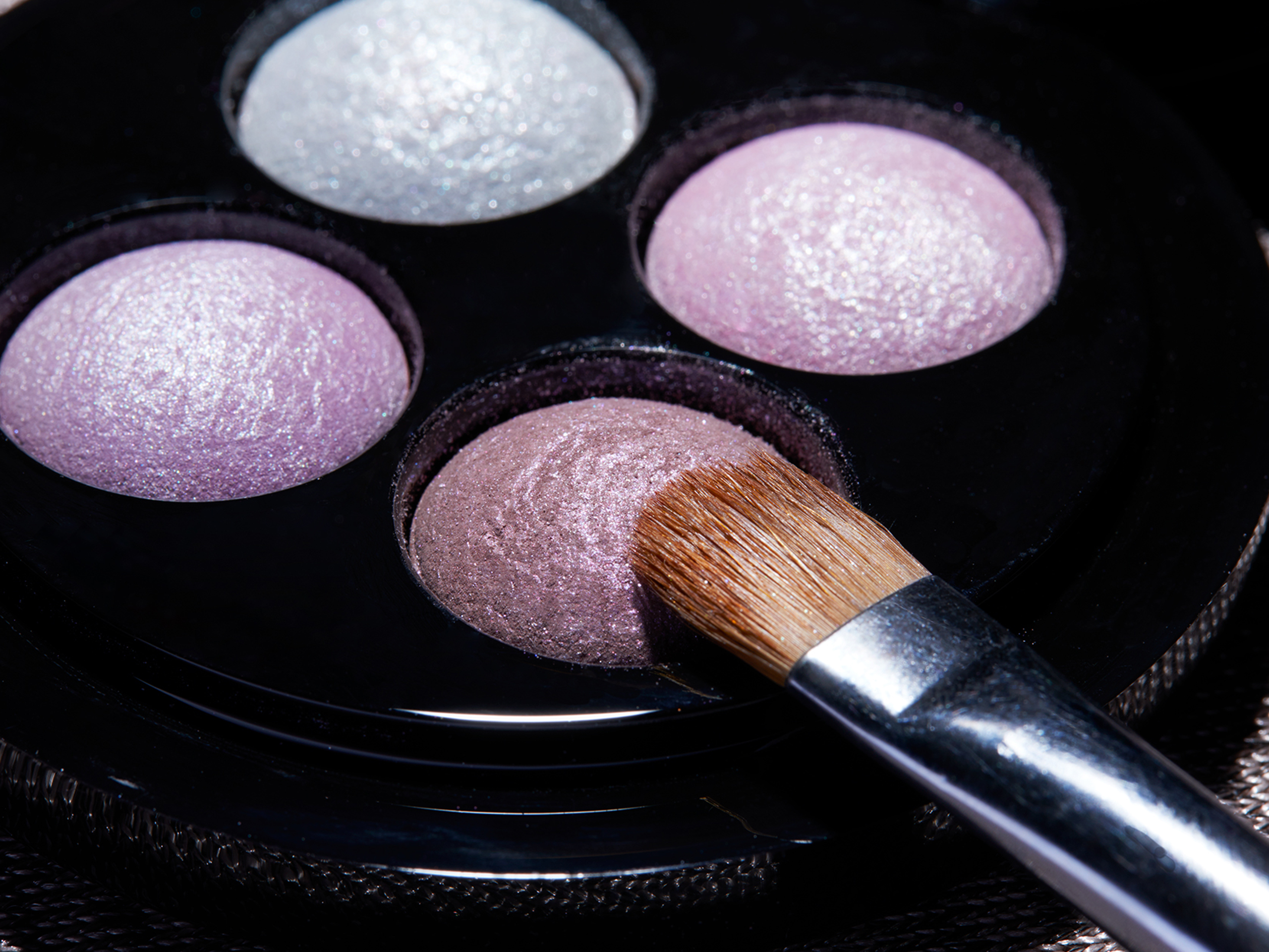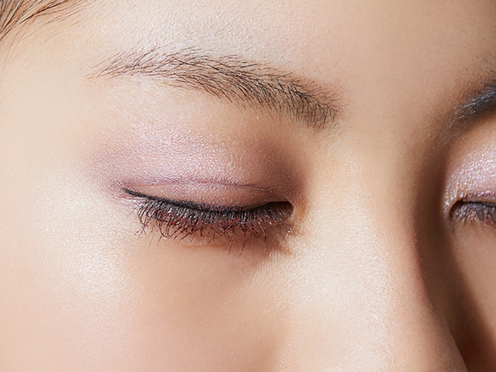 アイホールにはモーヴ色でグラデーションを作ります。まつ毛のキワに締め色としてブラウンを重ねて。アイラインは黒に近いブラウンをしっかり目に入れます。