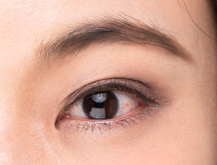 まず、アイシャドウは縦幅を強調するために、アイホール全体に薄い色のアイシャドウを少し黒目の上をはみ出すように楕円形を意識して塗りましょう。