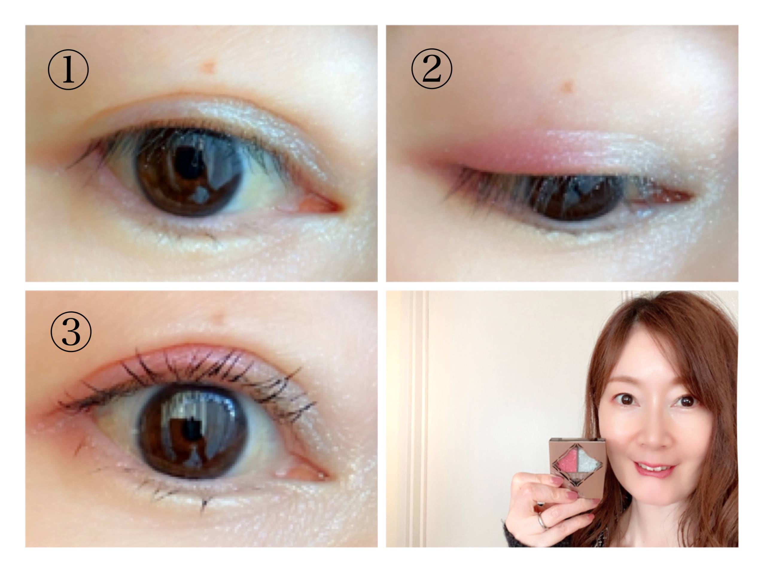 アイメイクに明るい色を使うと、マスクをしていても目もとが映えて、肌がトーンアップしたように見えます。冬は落ち着いたカラーを使いがちですが、ふんわりとしたアイメイクで気分も上げていきましょう♫