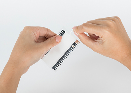 両端に持ち手になる部分が付いているので、台紙から剥がす時、まぶたに貼る時もふたえテープの端側の粘着力が弱くなる心配なし!
