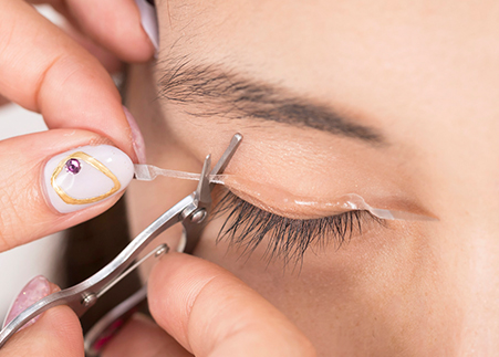 しっかり引っ張った状態でまぶたに貼って、端の余った部分を小さめのハサミでカットするのが綺麗に仕上げるポイントです。