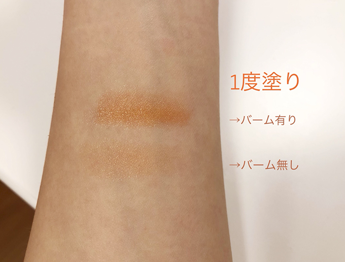 アイシャドウを塗る前に、バームを塗れば発色がグッと良くなります。今っぽいツヤのある透明感が出てくるので、いつも使うアイシャドウの前にひと塗りしてみてくださいね。