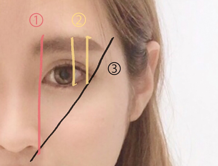 眉頭のスタートに迷われた方は、小鼻から目頭の延長線上に来るように描きましょう。
