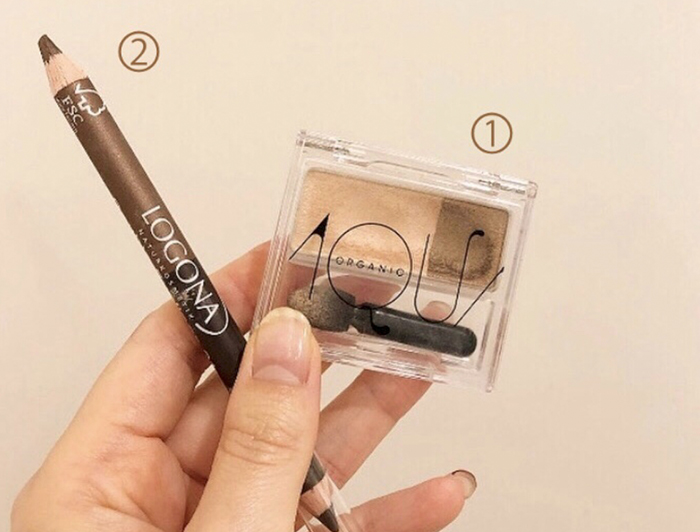 眉毛に使うパウダーはアイシャドーでもキレイに仕上がります。いつも使っているブラウンアイシャドーを目元と眉毛のダブル使いすることで統一感が増し、こなれ感が出るでオススメです。このアイシャドーは、上品なツヤと馴染みの良い発色なので眉毛に使うと柔らかさを出してくれます。