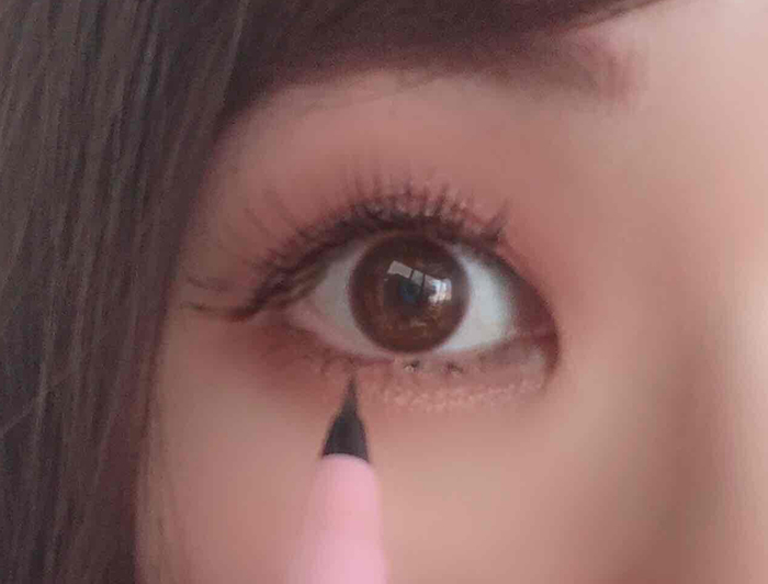 すると、まるで下まつ毛が生えているかのように自然に見えます。ブラウンのアイライナーなので目元も優しく見え、ほどよく印象がアップ♪