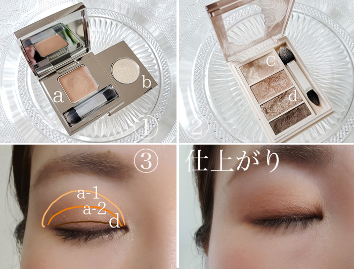 ①アイシャドウをブラウン→ベージュにチェンジ。