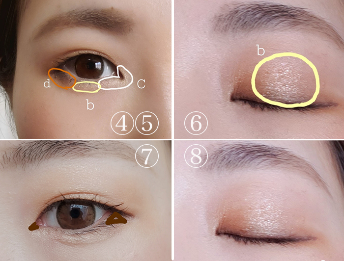 ⑤bを黒目の下とまぶたの中心に丸くのせます。