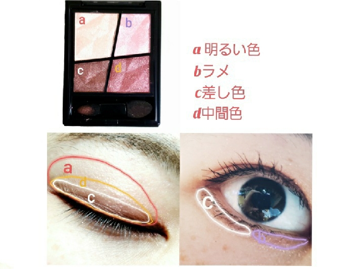 pink4.cの締め色を下瞼の際から中間にかけて塗ります。