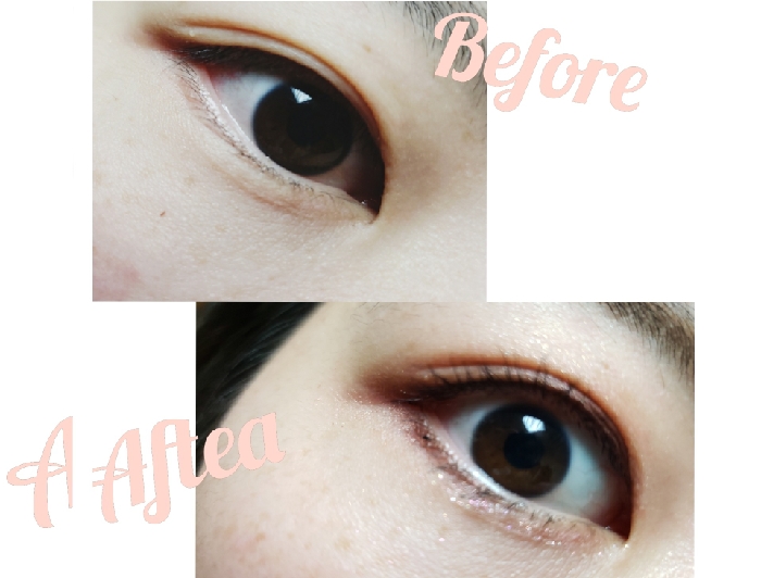 ピンクアイシャドウはピンク部分を広範囲に塗る事で腫れぼったく見えます。目を開けたときにブラウンが少し見えるように広めに塗って。ブラウンを広範囲に塗りすぎてしまうとせっかくのピンクが隠れてしまうので、自分の目の幅に合わせてギリギリブラウンが見えるように塗ると、より自分にあったピンクメイクが楽しめますよ。