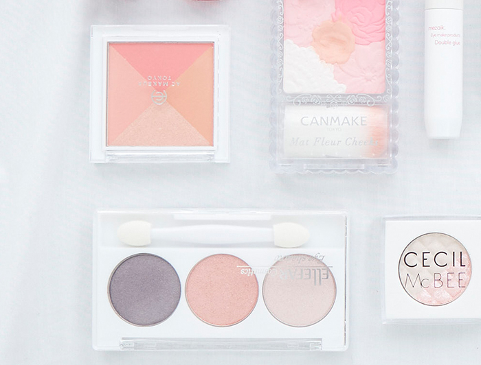 ピンクやオレンジ、ベージュなど肌馴染みの良い色。これらの色に茶色や灰色が混じったダスティな中間色、グレーピンクやブラウンオレンジなどは、締め色にもアイホールにも使えて便利です。アイホールにも使うときは光沢感のあるものを選んでくださいね。