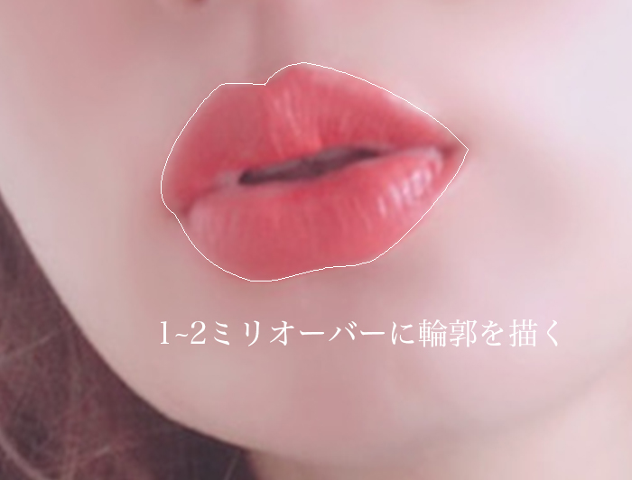 ② 元の唇より1〜2ミリほどオーバーに輪郭を描く。