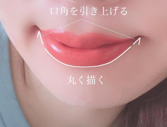 ※口角がボヤッとしていると老けて見えるので口角の輪郭がくっきり出るようにして。