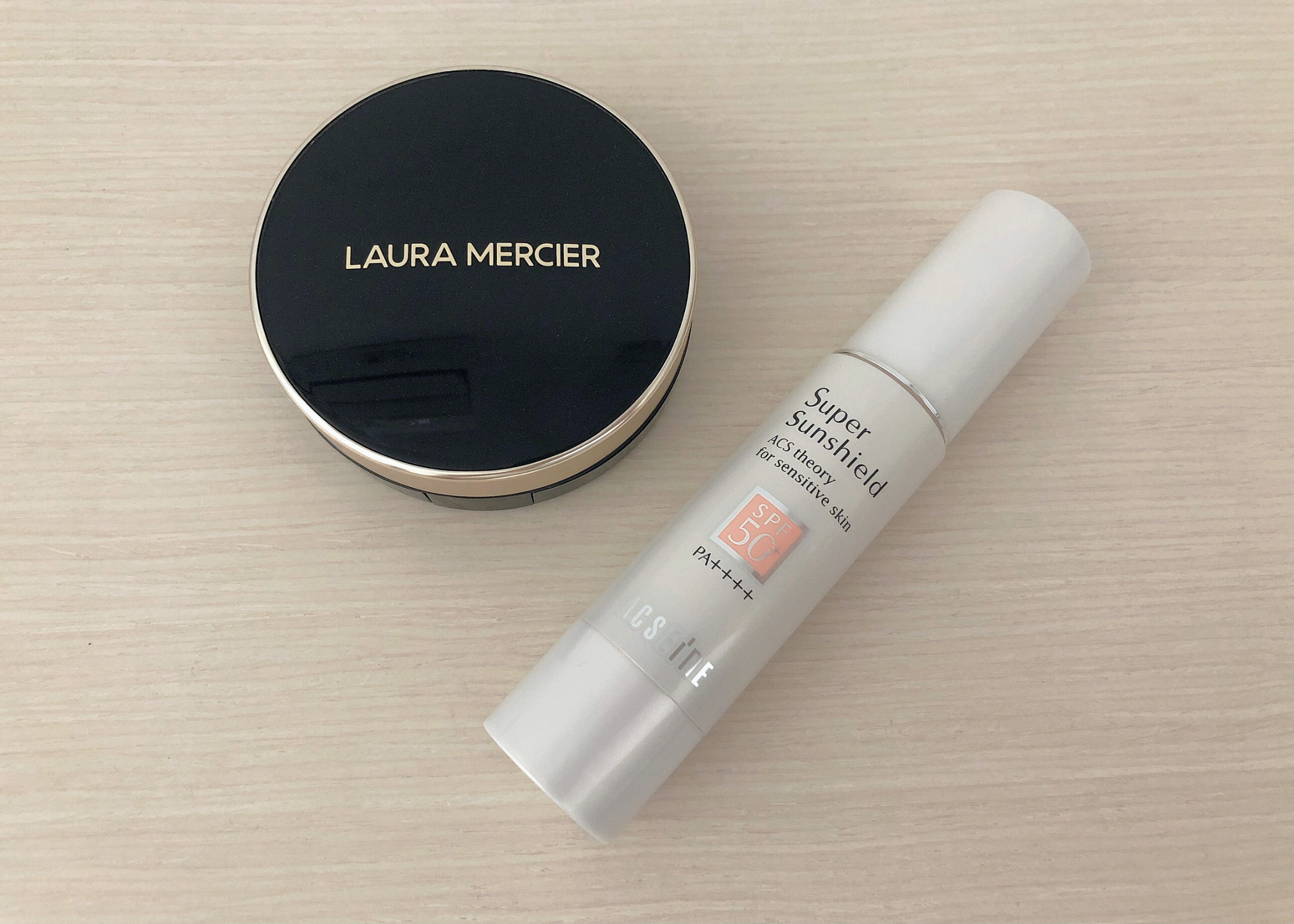 少しピンクの色味の入ったUV下地を使って、紫外線対策をしながらお肌を自然にトーンアップ。 ナチュラルな仕上がりだけどカバー力もしっかりあるクッションファンデで自然なつや肌を目指 します。 クッションファンデの上から軽くブラシでパウダーを重ねておくと、マスクの湿気や擦れによる 化粧崩れを軽減できるのでおすすめです。