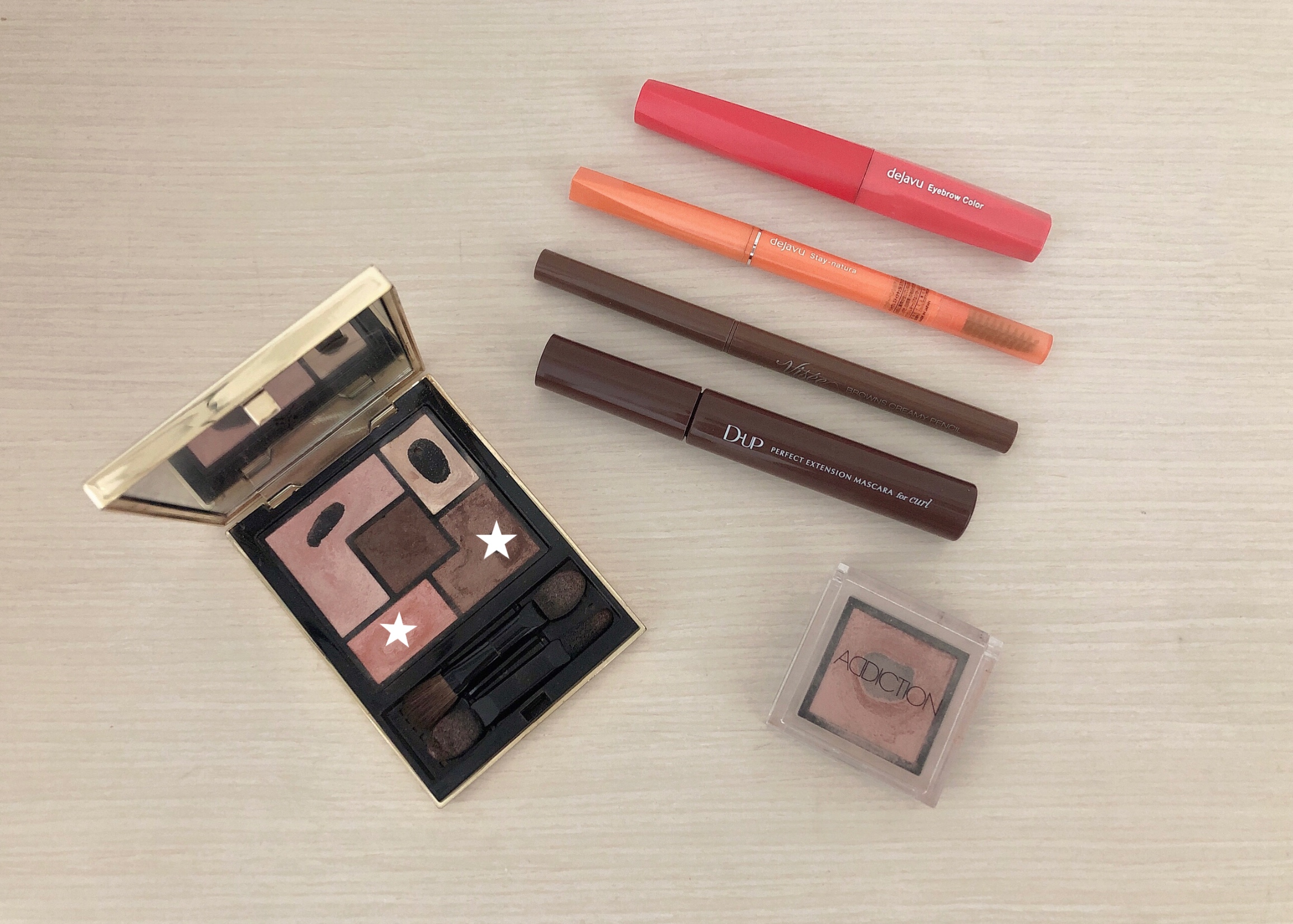 アイラインとマスカラ、アイブロウなどのアイテムは全てブラウンにして統一感を出しましょう。 オレンジのアイシャドウにブラックのマスカラやアイラインでは、強い印象になってしまいます。 ブラウンで物足りない場合は、ダークブラウンを使うと、柔らかい印象はそのままに少し濃さが プラスされ、アイメイクを強調することができますよ。
