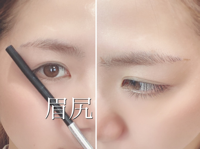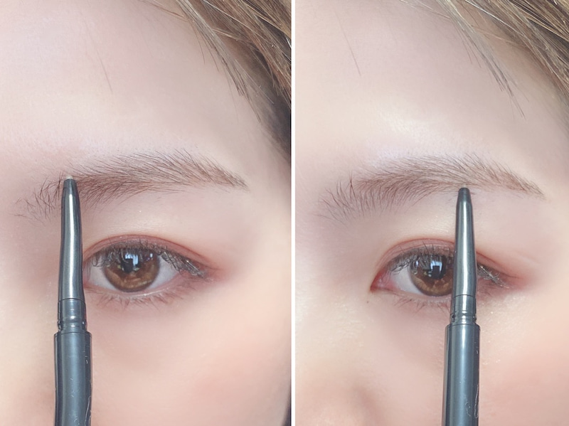 眉頭、眉山、眉尻の位置を確認した後、足りない部分を描いていきます。眉尻などシャープに描きたい部分はペンシルがおすすめです。全体的に眉がしっかり生えてる方はペンシルで足りない部分を足していくと簡単です。