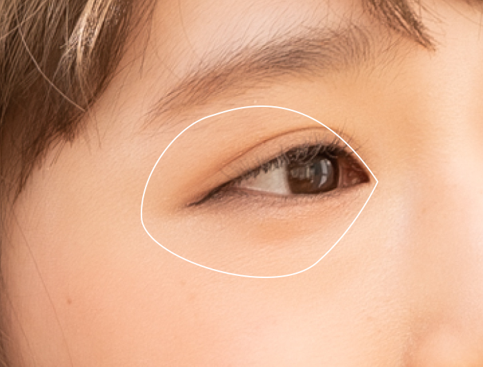 通常はアイホール部分にだけベースシャドウをのせますが、パノラマエリアにのせることで、影のできやすい下側も明るく見せてくれます。