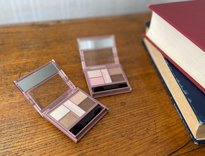 今回は優しい印象に見せたかったので、赤みのピンク色とオレンジ味のあるベージュを取り入れました。アイメイクにも使っているので統一感も出て、最初のパウダーだけの仕上がりよりも、柔らかい印象に見えます。