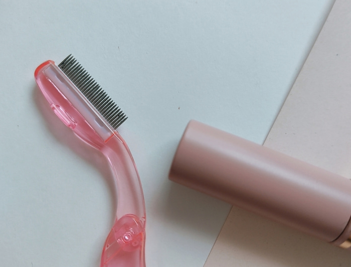 マスカラを使う前に、コームでしっかりまつ毛をとかします。マスカラを容器の縁とティッシュで余分な液を取って、まつ毛が扇状に広がるように丁寧に塗ります。このときマスカラを左右に動かさず、縦方向に伸ばすように塗るのがポイント。最後にもう一度、コームでまつ毛をとかせば完成です。