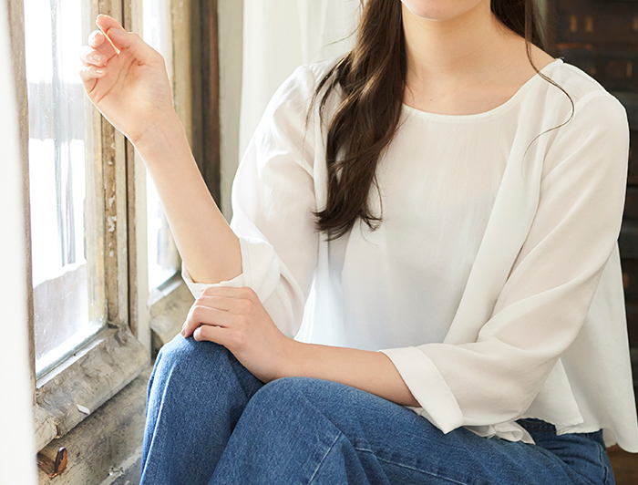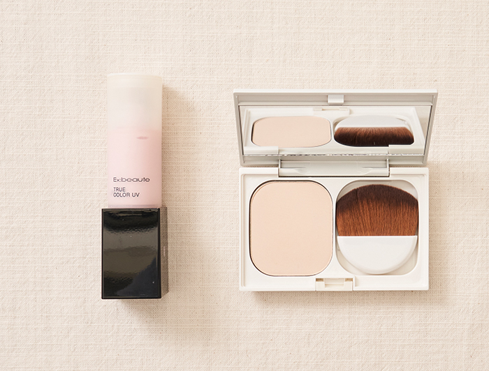 ツヤ肌は今季もトレンドを継続。けれど、ツヤを全面に出しすぎるとカジュアルな服装に合わなくなるので、あえてファンデーションを使わずに仕上げます。下地+気になる部分にコンシーラー+パウダーで軽やかな仕上がりを目指しましょう。下地やパウダーにパールが入っているものを選べばツヤ感も生まれ、ナチュラルな準ツヤ肌に。下地やパウダーはカラーレスよりも色のついたものをセレクト。それぞれ異なるカラーを重ねることで肌に透明感が生まれます。