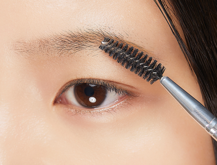 アイブロウは眉の輪郭をハッキリさせるとコンサバメイクになるので、輪郭をブラシで丁寧にぼかして。全体をふんわりソフトに仕上がるように意識しましょう。