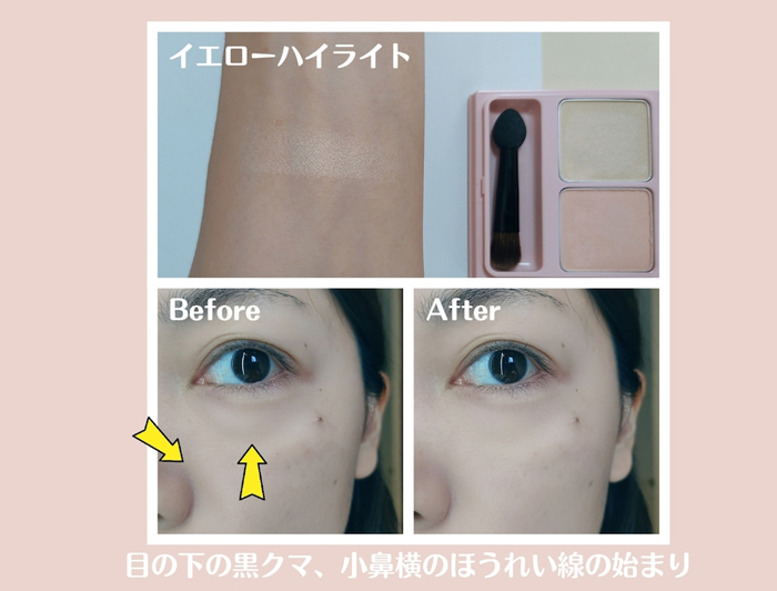 肌馴染みの良いイエローは白浮きせず、馴染み方も自然。