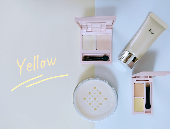 イエローには、赤み補正や色素沈着•茶ぐすみなどの補正、生き生きとしたヘルシー肌にみせてくれる、白味を含んだイエローならトーンアップなど、補正カラーとしてとても万能なカラーです。