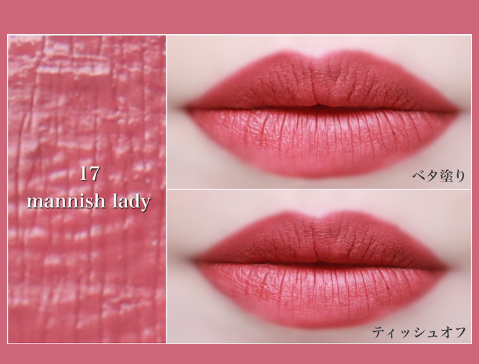 パキッとした仕上がりで普段使いしにくいマットリップも、ワセリンを混ぜてあげれば普段使いしやすい質感、色味に変わります。
