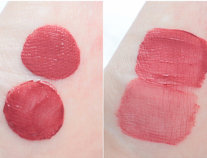 上の画像は、上側がマットリップ、下側がマットリップ+ワセリンを混ぜたもの。ワセリンの量を増やせば色味の調節もできるから、マットリップが苦手な人にもおすすめな使い方です。