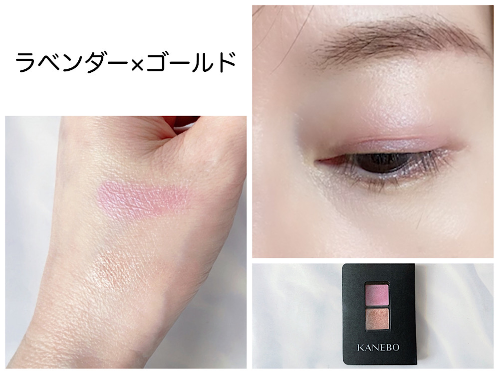 透けるようなラベンダーカラーは春夏に大活躍。でも淡い色だから夏の強い日差しに負けそうかも…。そんな時に合わせて使いたいのがゴールドです。上まぶたはラベンダーのみ、涙袋にゴールドを。または、縦割りグラデーションにしてもきれいです。