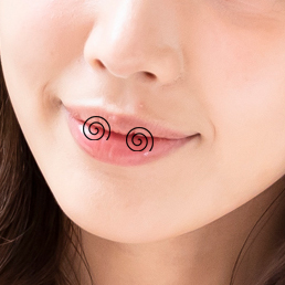 ①唇にスクラブまたはハチミツシュガーをまんべんなくのせる。