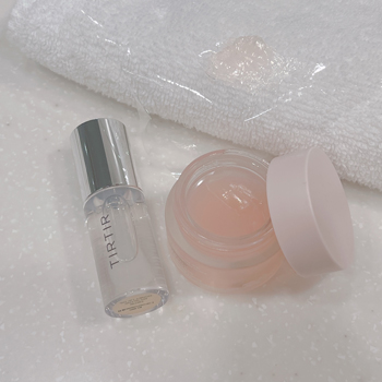 ④シュガーが少し溶けてきたらぬるま湯で流して、リップや美容液で保湿してケア完了。