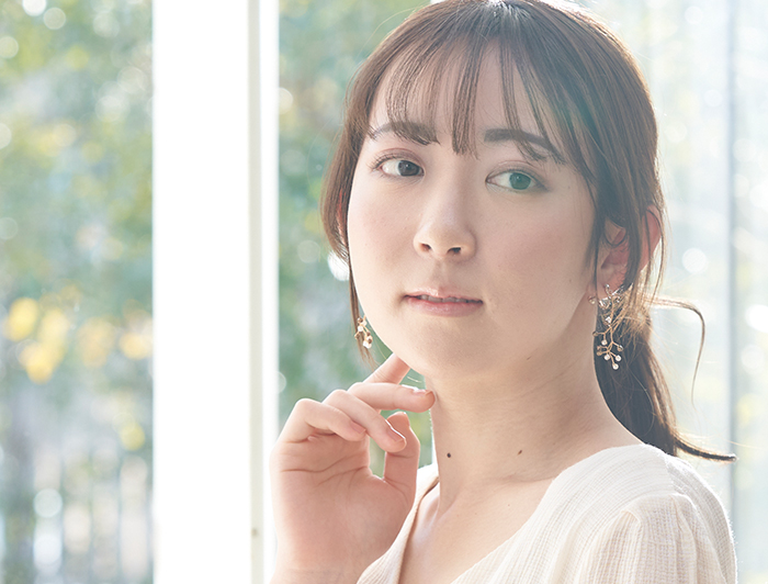 アイシャドウ、アイライナー、チーク、リップ等、使うのはどれも淡い色味。ただ、それだけだとノッペリした印象になるので、まつ毛に束感を出したり、リップにツヤを足したりして顔の中にメリハリをつけていきましょう。