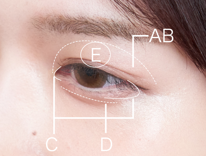 ④ 上まぶたの真ん中にEを入れて立体感を出します。