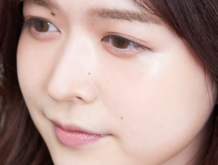 目をつぶった時の延長上に真っ直ぐ降ろして、少しタレ目の印象にします。上の二重ラインと離すことでよりふたえ幅を広く見せて。アイラインを長く描きすぎると不自然に見えるので2、3ミリだけ長めにするのがポイントです。