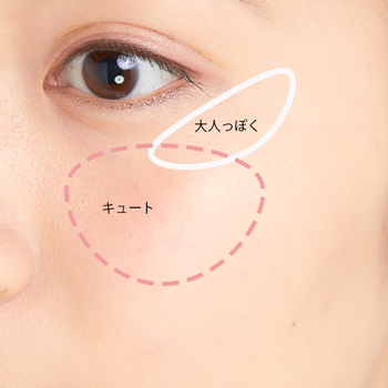キュート・・・頬骨あたりから鼻先の範囲内にぼかす。