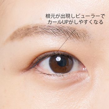 重ためのひとえだと長いまつ毛もまぶたが上からかぶさって隠れてしまいますが、ふたえにするだけまつ毛の見え方がかなり変わります。まつ毛の根元がでるとビューラーも使いやすくなりマスカラも根元からしっかりカールアップ出来るのがうれしい。