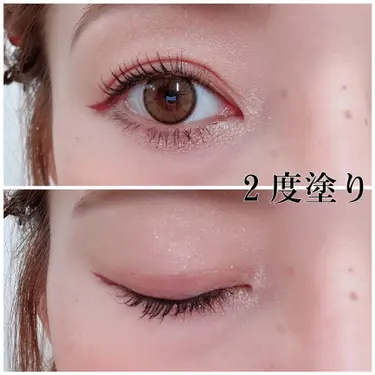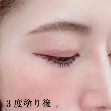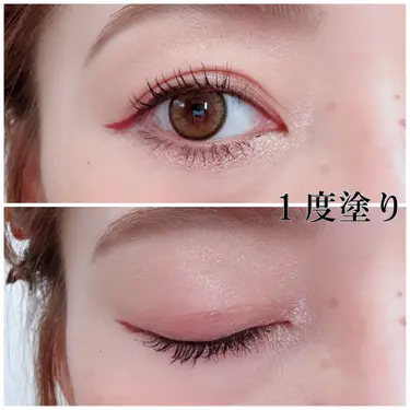 目を伏せても、アイラインのゆがみもなくスッとキレイに。まぶたの重さに合わせて重ね塗りで調整できるので初めてでも試しやすいのででおススメ。