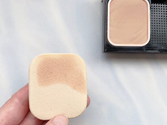 メイクの持ちをよくするフェイスパウダーですが、塗る際にひと手間をかけると、さらに持ちがよくなります。その方法は、水で濡らしたスポンジを使うこと。付属のパフでももちろんOKですが、わたしは使い捨てのスポンジを使っています。毎回新しいスポンジを使えば、清潔で洗う手間もいらなくて便利。ルースパウダー(粉)と、プレストパウダー(固形)のどちらを使っても効果はあります。