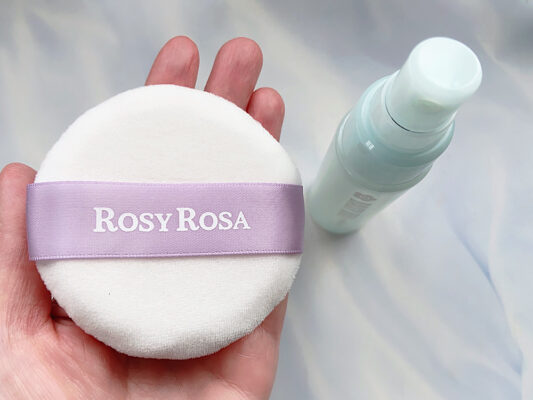 「メイクフィックスパフ」です。もちもち・ふかふかとした大判のパフは、厚みもしっかりとあり、肌触りがばつぐん。顔にミストを吹きかけたあと、こちらのパフで押さえるとファンデの密着がぐんとアップします。パフに直接ミストをかけて使用することもできるので、細かい部分もきちんとキープできます。