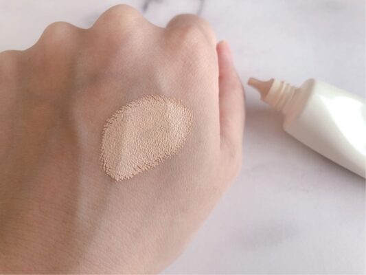 まずは肌トーンを均一にしましょう。カラーベースを活用すると、シミの目立ちにくい肌に仕上がります。肌のくすみや色ムラをカバーしたいのでイエロー系がおすすめです。